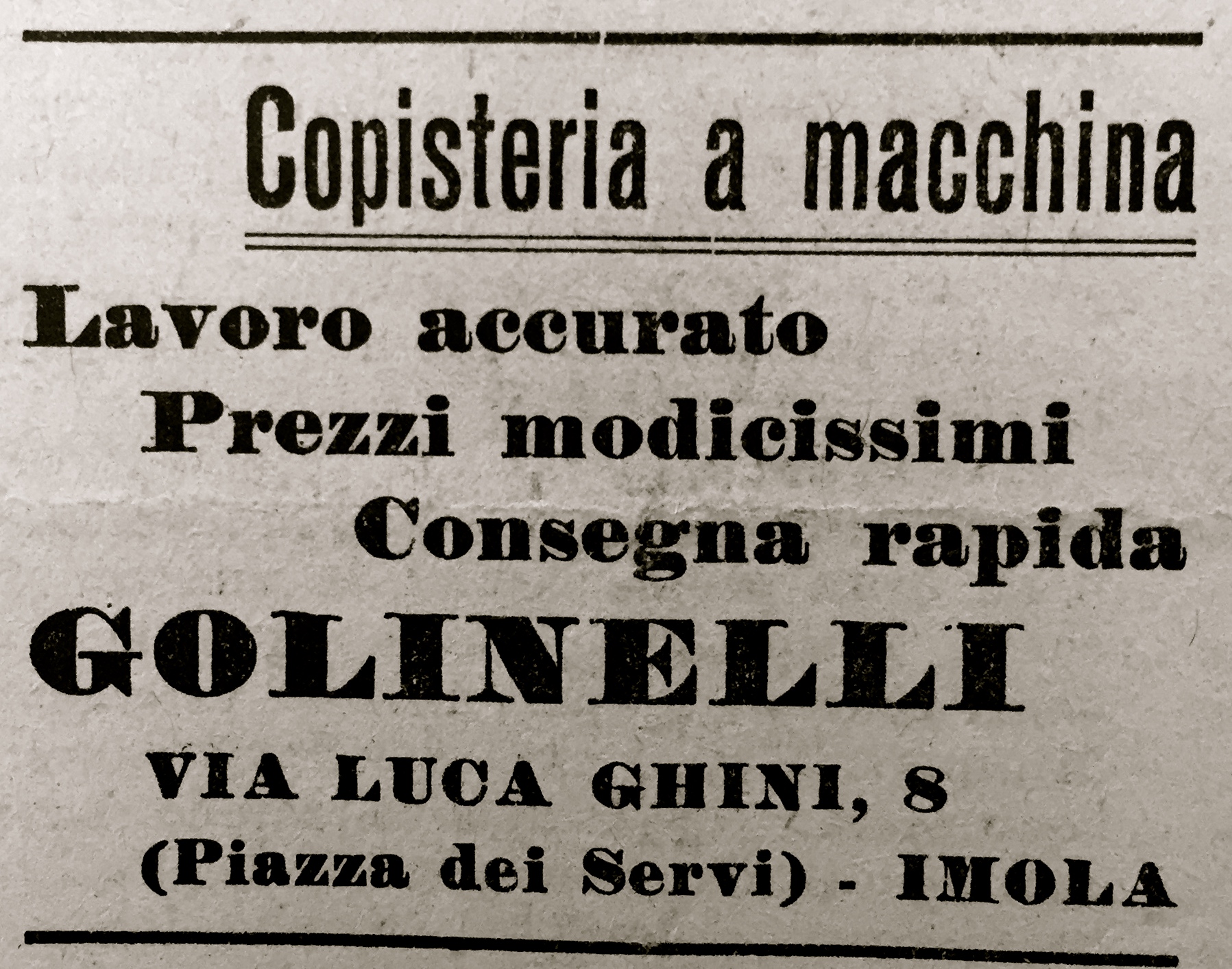 Cinque anni dopo la Liberazione, se andiamo a guardare i giornali locali – Il Momento, Il Diario e il Giornale dell’Emilia (che poi fu sostituito dal Resto del Carlino) – si percepisce già l’inizio di una nuova fase di fiducia e di speranza. Sono solo particolari, ma ho fotografato alcune inserzioni pubblicitarie che danno un senso di come la vita stia riprendendo e come ci si stia riorganizzando la vita da “formichine” con grande impegno e con una grande voglia di trovare occasioni di svago e divertimento: nonostante la crisi. Le inserzioni pubblicitarie ci raccontano molto di questo clima.