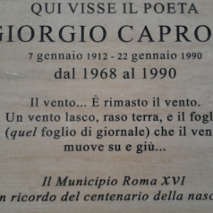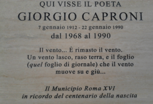 La lapide dedicata a Giorgio Caproni all’ingresso del palazzo di via Pio Foà, dove abitò a Monteverde