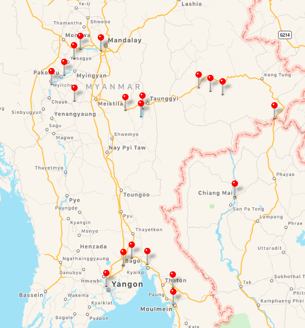 Un viaggi comodo, ma intenso, visto che il tempo a disposizione era molto poco e le cose potenzialmente da vedere molte. Abbastanza per caso siamo partiti dalla Tailandia, Chan Mai, dove ero andato – anche allora molto casualmente – in un viaggio nell’estate del 1991. Il resto delle tappe sono queste: