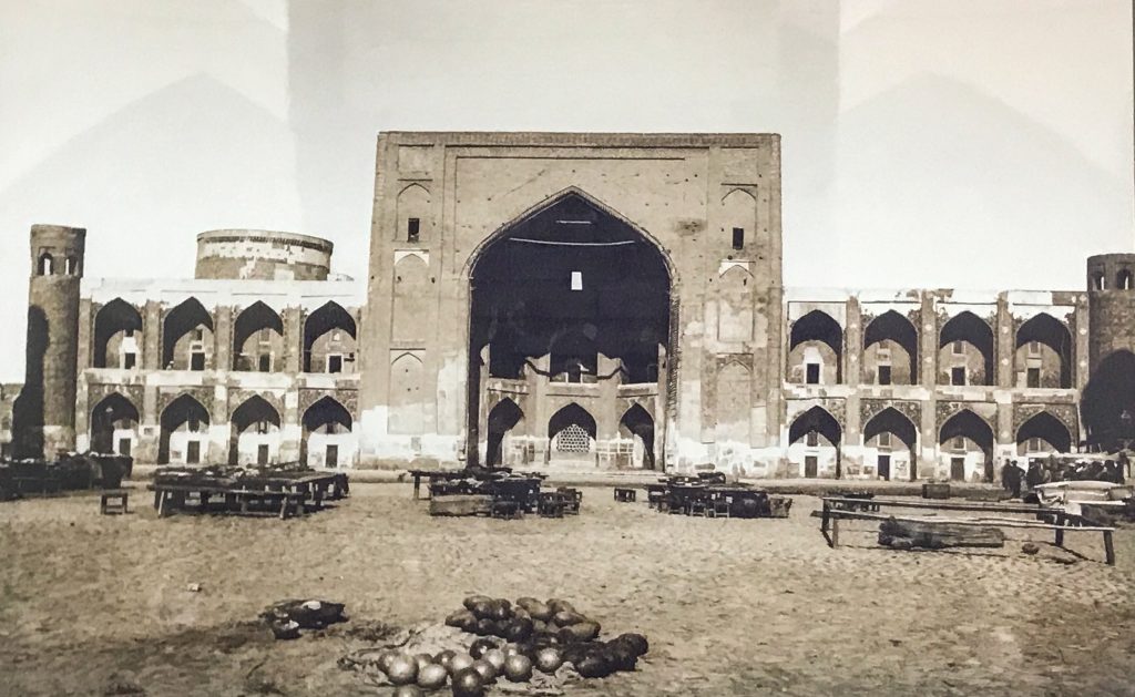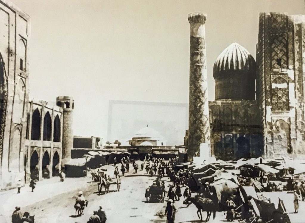 Ai suoi tempi la città di Samarcanda costituiva il primo luogo di sicuro riposo e di sosta per le merci. Una vera e propria «città carovaniera», com’è provato dal suo assetto urbanistico: il bazar-asilo-deposito era al centro dell’area intramuraria, nella «piazza della Sabbia dei Mercanti», il Reghistan, addossato a un rilievo sul quale doveva già ergersi una qualche fortificazione.