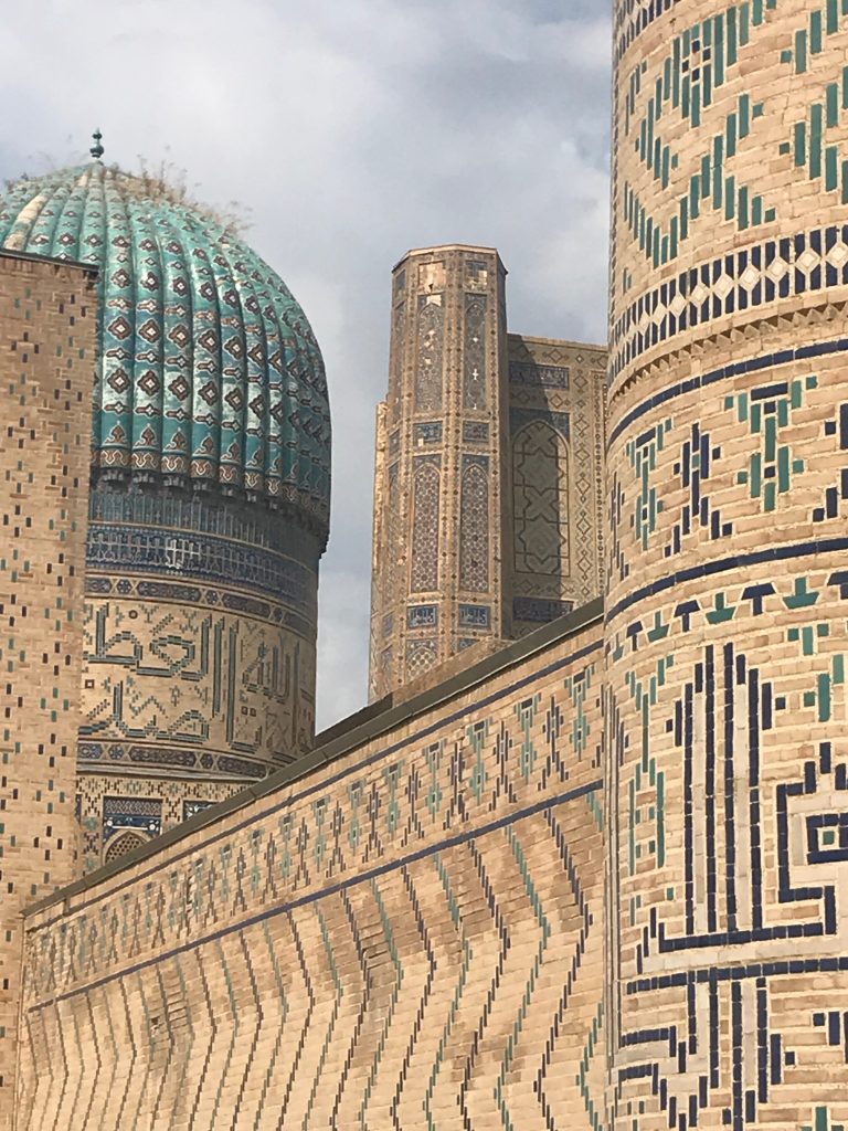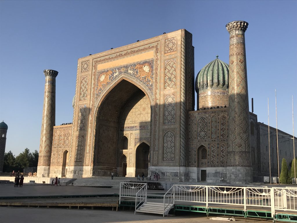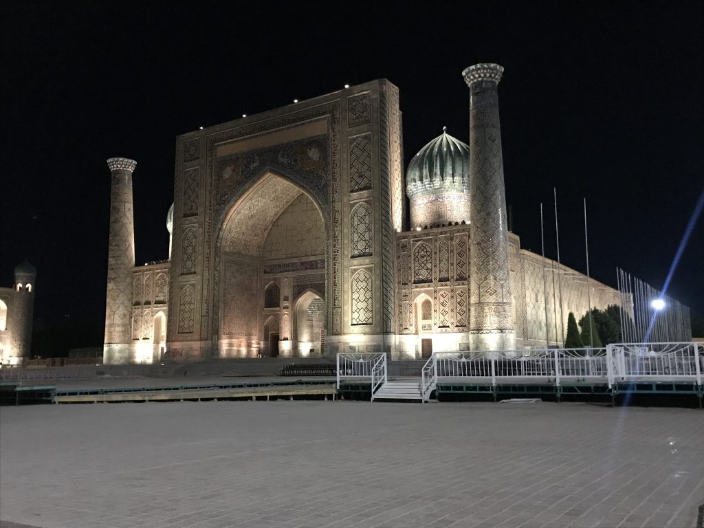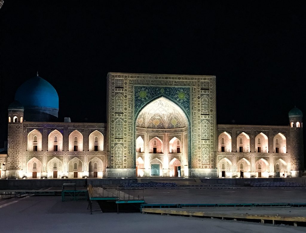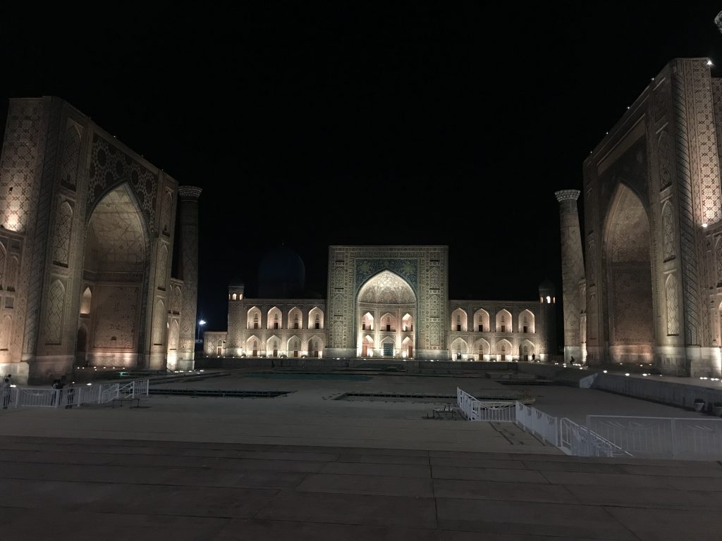 Oggi il Reghistan di Samarcanda, ricostruito durante il periodo sovietico, una volta era il più bel monumento dell’Islam (per ciò che ho visto finora io, lo è ancora). È una vasta piazza simmetrica racchiusa dalle tre famose madrase, le università medievali di Tilla-Kari, Sher-Dor e Ulugh Beg.