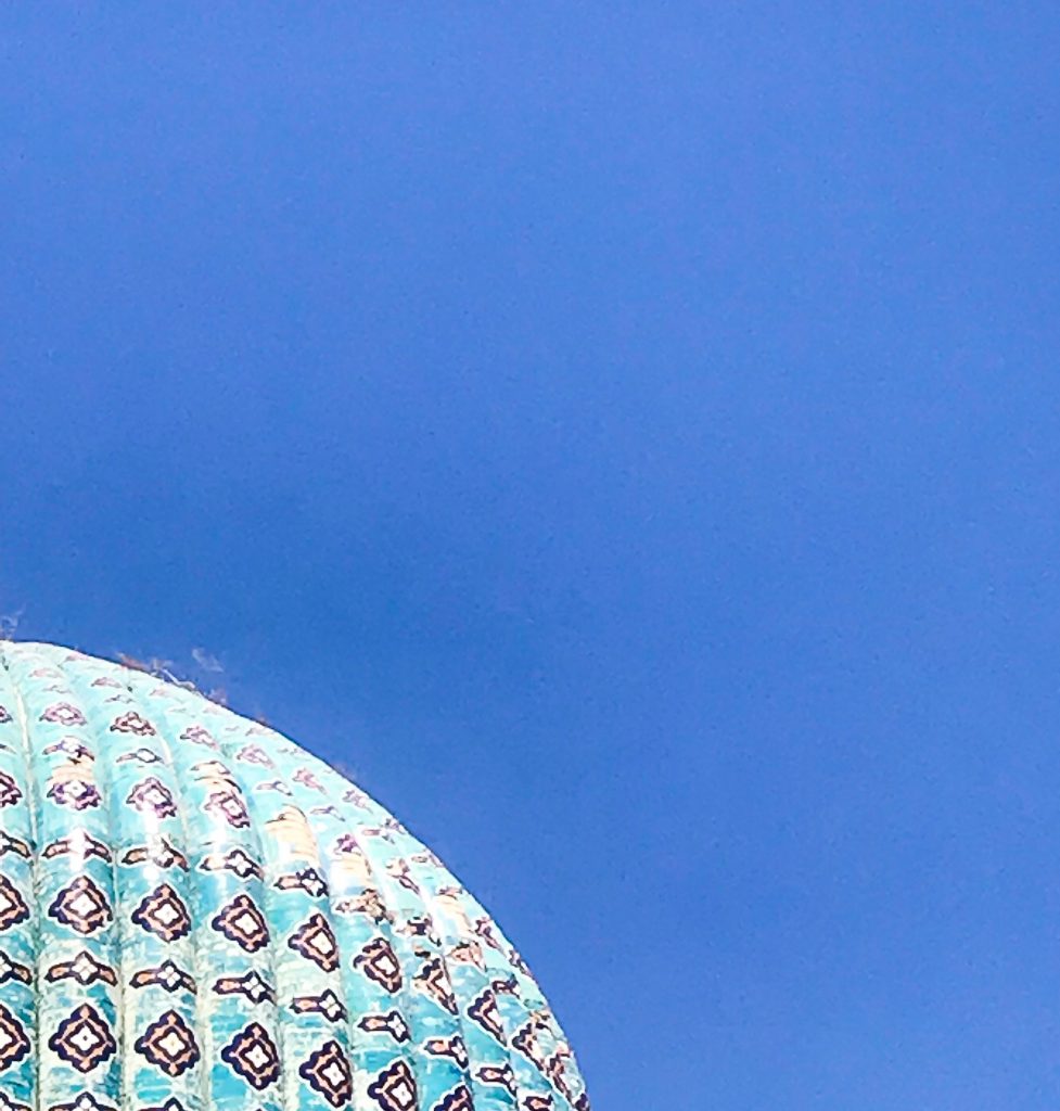 Il viaggio in Uzbekistan, toccando Kirghizistan, Tagikistan e Kazakistan è un’esperienza estasiante. Un sogno che proietta in una dimensione senza tempo e straniante fatto dalla realtà islamica, dai segni dell’utopia rivoluzionaria, da quelli della tradizione nomade ed elementi di modernità. Segni, opere, architettura, arte a volte indipendenti tra loro, a volte vicini, altre volte fonte di stridori. Samarcanda arriva “non poi così lontana”, folgorante, affascinante, colorata, bellissima, finta ma credibile. Una città talmente bella che sorprende per la sua potenza. “Presente inattuale o passato-che-non-passa? Trionfale fallimento o progetto da ridefinire? Utopia o realtà? Sogno o incubo?” come tra affermazioni e domande scrive Franco Cardini in Samarcanda: Un sogno color turchese. Il suo libro, molto bello, che per scrivere questo post ho saccheggiato e ne ho estratto le storie (e le leggende) che racconto.