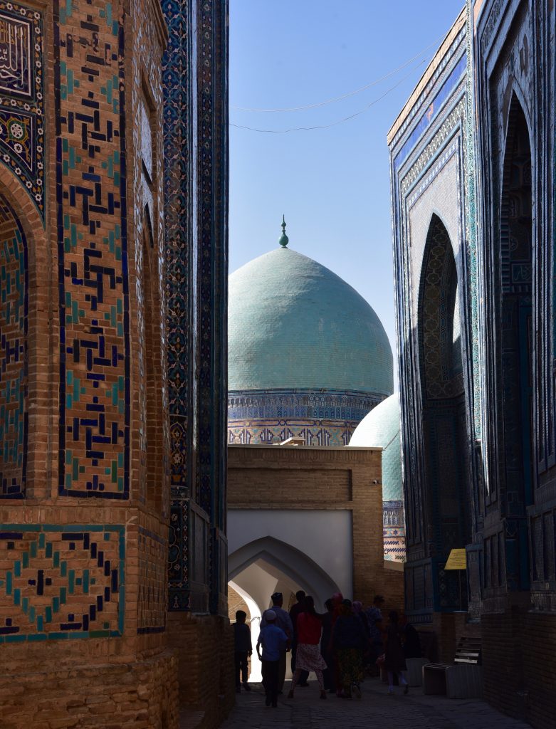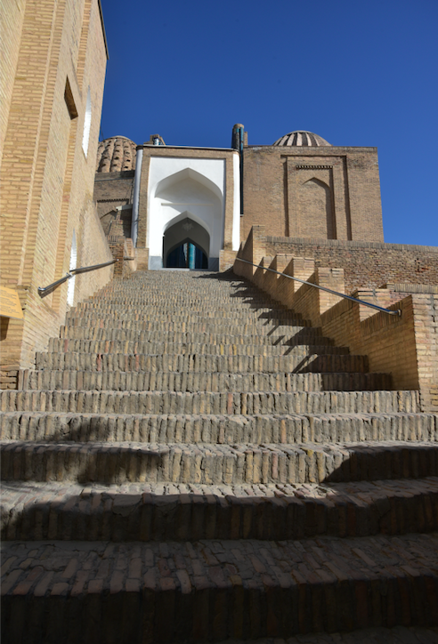 Ulugh Beg – nipote prediletto e successore di Tamerlano – avrebbe fatto erigere questo agglomerato nel 1435. Nelle foto sotto vedete come presenta, oggi, l’ingresso all’erta «scalinata del Paradiso», i gradini della quale – secondo una tradizione – sono di numero diverso a seconda che la si salga o la si scenda.